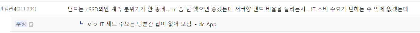 2. 낸드는 eSSD를 제외하고는 계속 수요가 안 좋음. IT 세트 수요가 늘어나야 낸드가 좋아지는데 IT 세트 수요는 당분간 답이 없어 보임.